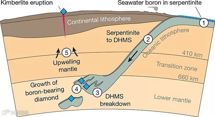含硼蓝钻形成示意图。图片来源:Nature