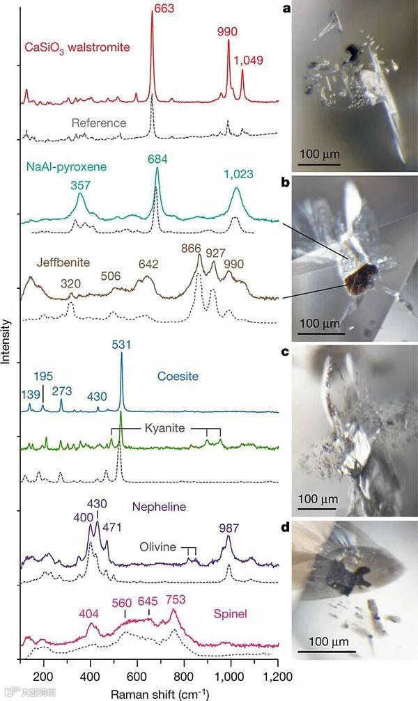 含硼钻石中包裹体的拉曼光谱。图片来源:Nature