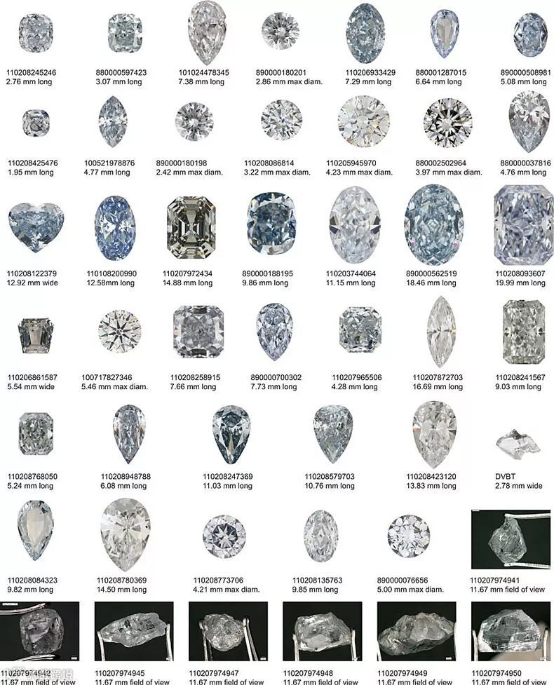 研究者挑选的46颗蓝钻。图片来源:Nature
