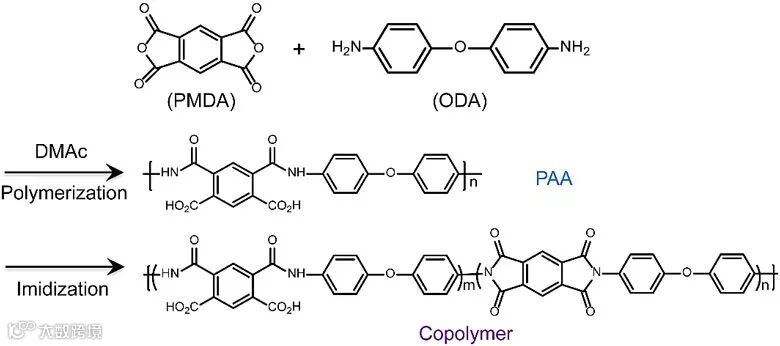 近日,德国明斯特大学Harald Fuchs教授、上海交通大学李涛研究员、天津大学胡文平教授团队通过简单的退火温度的改变,将聚酰胺酸部分亚胺化成一种共聚物(聚酰亚胺的一种)。这种共聚物中亚胺化的部分通过苯环和脂环之间的相互作用可以很好的保证其介电性能;未亚胺化的部分含有极性强的官能团(-COOH/-CONH),通过与半导体之间的相互作用,从而使得半导体更加有序、结晶性更好地生长。