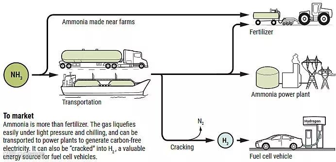 氢能源是公认的清洁能源,一直被研究者关注,但是纯氢供给目前还没有一种经济有效的方法。氨(NH3)也是一种储氢燃料,尽管它看起来并不“理想”:由1个氮原子与3个氢原子结合而成,目前主要应用于制备农业肥料和清洁剂,闻起来令人恶心且有毒。