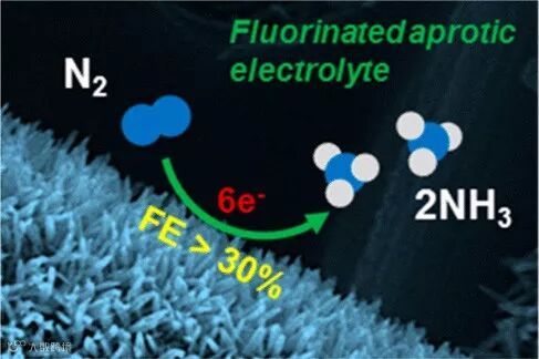 近期,通过电极-电解质工程,MacFarlane课题组通过进一步提高阴极上纳米结构铁催化剂的表面积,并使用非质子氟化溶剂-离子液体混合物作为电解质,大幅提高了N2电还原制氨的速率和选择性 [6]。