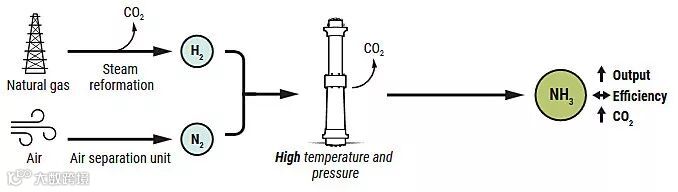 目前,大多数氨被用作肥料促进粮食增产,以养活当今世界爆炸式增长的人口。据估计,目前人体中至少有一半的氮来自工业合成氨。Haber-Bösch反应引发了现代农业的绿色革命,但这个反应本身并不绿色。工业合成氨目前消耗了大约全球2%的能源,产生了大约1%的全球CO2排放。尽管氨工业已经实现和新型煤化工、制氢技术等工业技术联产,然而并未改变其高耗能的现状。