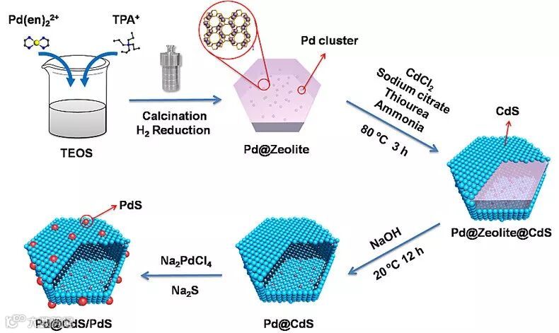 图1. 制备中空Pd@CdS/PdS催化剂的示意图