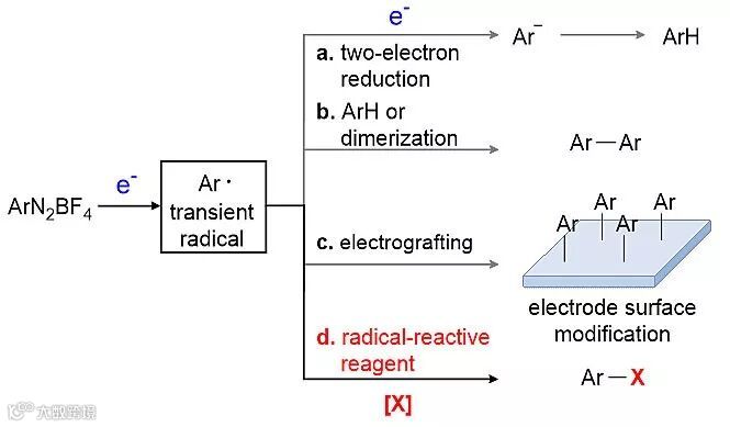 最近,北京大学的莫凡洋课题组报道了电化学的桑德迈尔反应,以电为驱动力在阴极还原芳基重氮盐得到芳基自由基,进而与各种卤化试剂反应得到芳基卤化物。相关工作发表在Chemical Science 上。