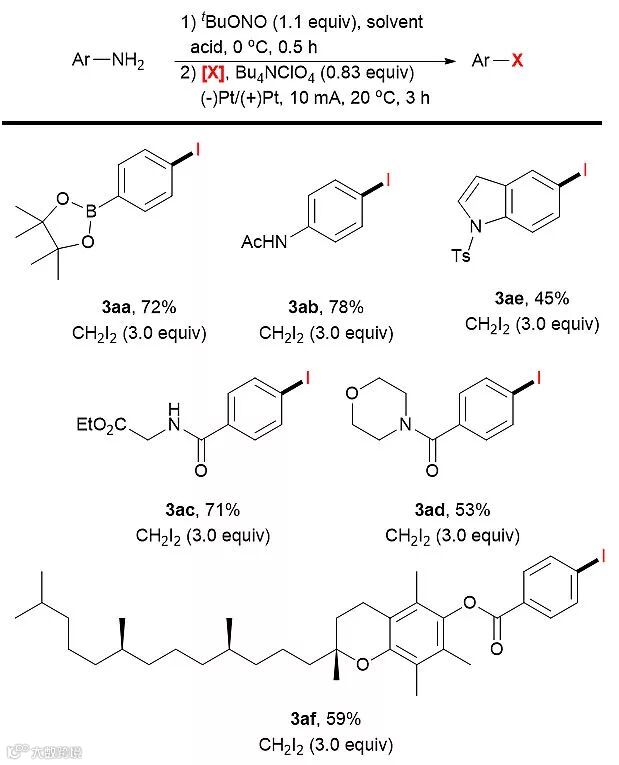 图3. 电化学苯胺卤化反应。图片来源:Chem. Sci.