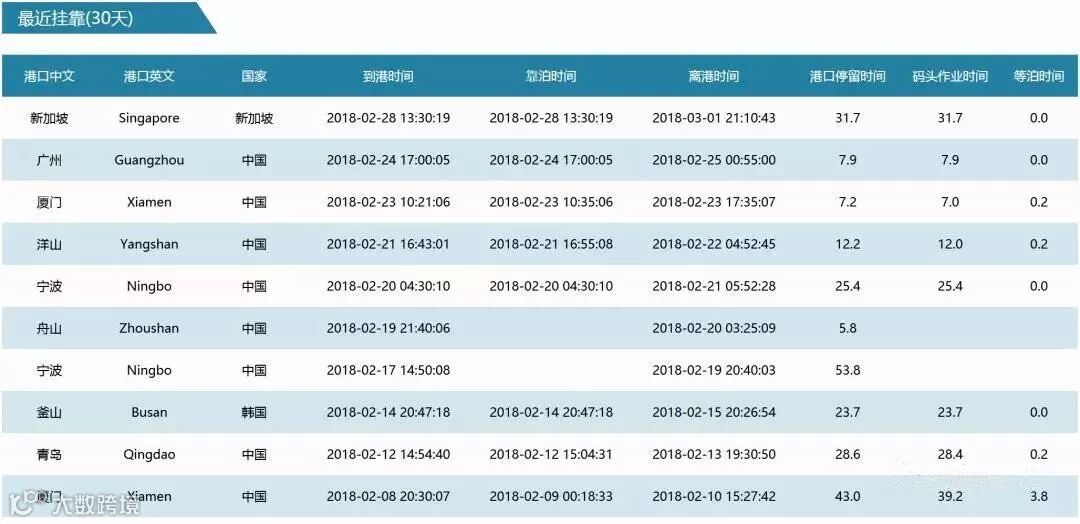 该轮近期挂靠情况如下: