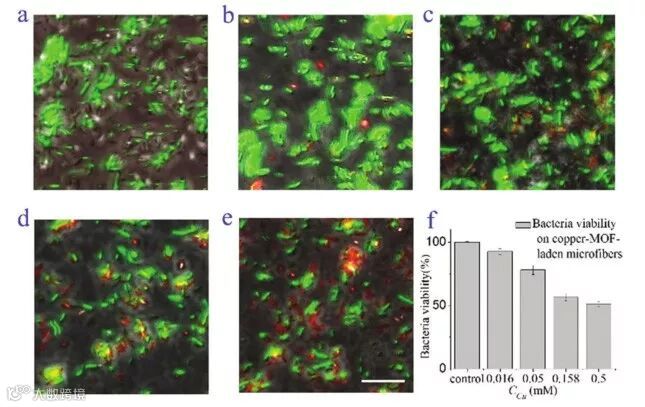 铜-维生素MOF水凝胶微纤维的抗菌活性。图片来源:Mater. Horiz.