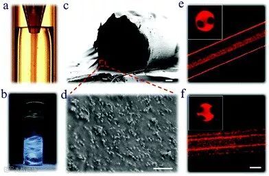 维生素MOF水凝胶微纤维过程及电镜图片。图片来源:Mater. Horiz.
