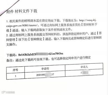 可通过通知中的下载码在:商标局官网--“答辩材料下载”--输入下载码和任意手机号进行下载。
