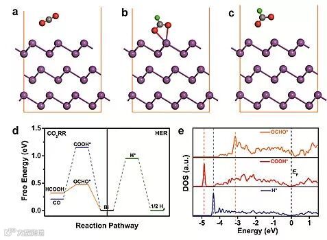 图5. BiNS催化剂(001)晶面上的CO2还原反应的DFT模拟。