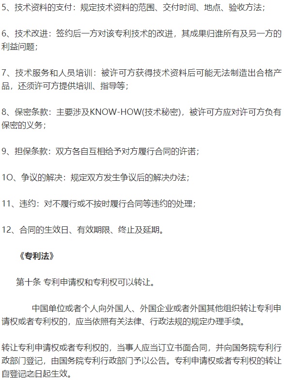 5、交叉许可:两个专利权人以技术互惠交换的形式相互使用对方的专利,这是因为双方的技术交叉,一方为了实施其专利必须运用到另一方的专利,如:改进发明方与原发明方,改进方要实施,需要利用原发明;原发明方要发展,也要使用改进的发明。
