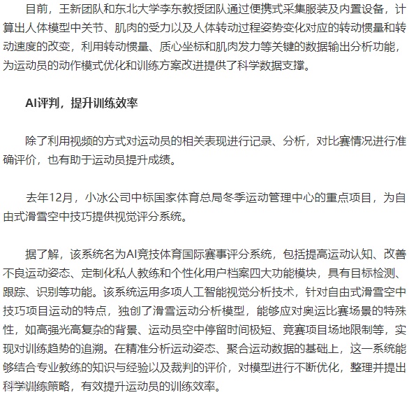 小冰公司的相关负责人表示,人工智能技术在竞技体育中的作用正逐渐显现,公司会继续进行自主研发,让AI赋能更多场景、领域,将创新成果从竞技体育带向大众体育。