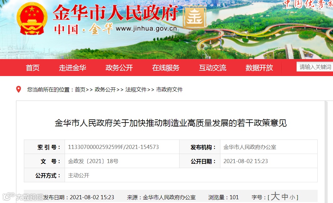 近日,金华市人民政府发布《关于加快推动制造业高质量发展的若干政策意见》。其中首次获得工信部“两化”融合管理体系贯标认定达到AAA级(流程级)以上的,奖励50万元。《意见》具体内容如下: