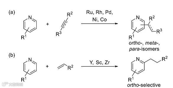 图1. 过渡金属催化吡啶衍生物的烷基化和烯基化反应。图片来源:J. Am. Chem. Soc.