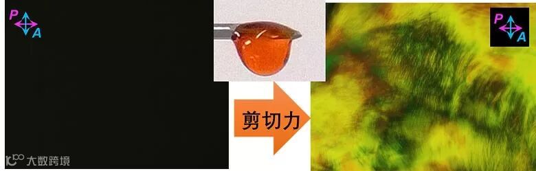 图2. 工程化蛋白流体:基于不同环境剪切力诱导的双折射图案。
