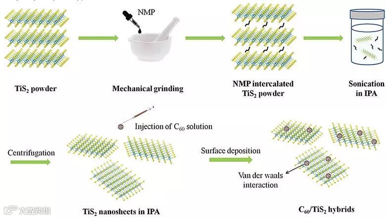 图1. 溶液法制备C60/TiS2纳米复合膜的示意图
