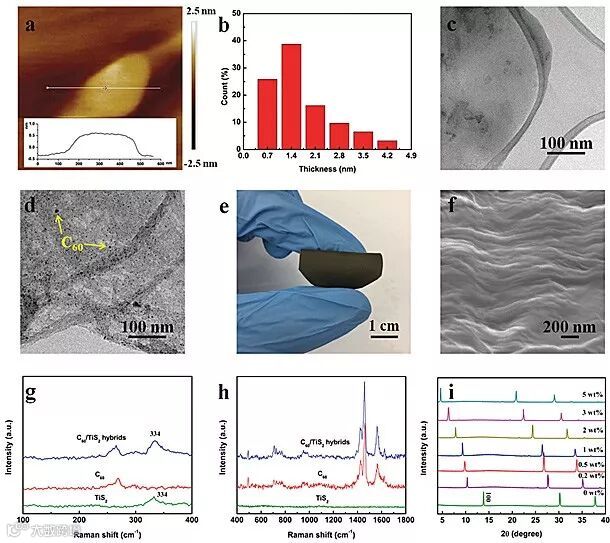 图2. 合成的C60/TiS2纳米复合膜的表征