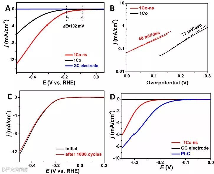 图2. 1Co-ns片层材料的电化学表征