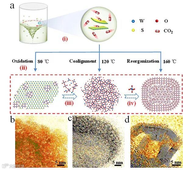 图1. 样品制备过程的示意图及相应结构的伪彩色TEM成像