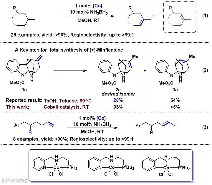 图2. 钴催化区域选择性的烯烃异构化反应