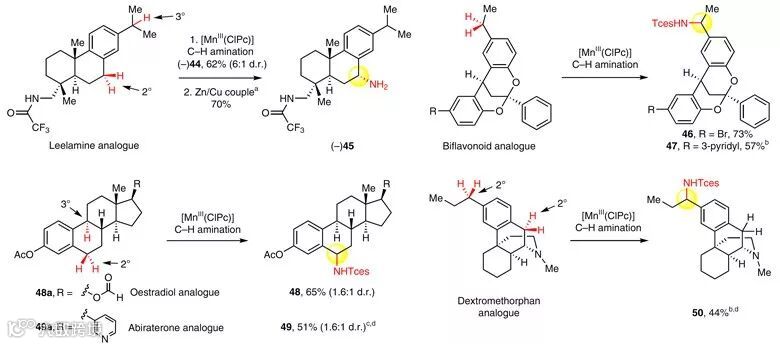 图6. 天然产物分子的后期苄位C-H键胺化反应。图片来源:Nat. Chem.