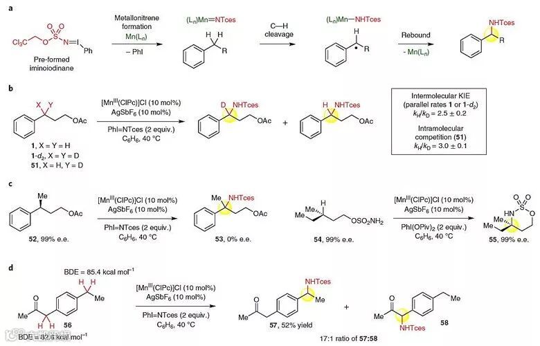图7. 分子间C-H键胺化反应的机理研究。图片来源:Nat. Chem.