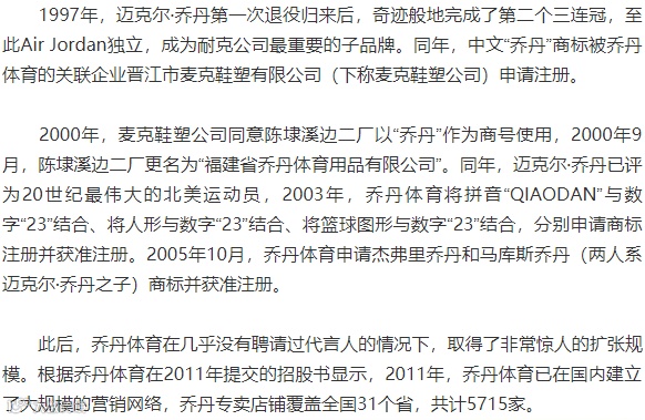 1984年,毕业于北卡罗来纳大学的迈克尔·乔丹被公牛队选中,开始了他传奇般的职业生涯。巧合的是,乔丹体育的前身福建省晋江市陈埭溪边日用品二厂(下称陈埭溪边二厂)亦在同年成立。彼时双方毫无瓜葛。