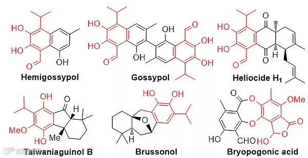 多取代水杨醛及其衍生物在天然产物、药物、农药中广泛存在,如Hemigossypol、Gossypol、Helicocide H1、Taiwaniaguinol B、Brussonol和Bryopogonic acid等(图2)。其中,棉酚(Gossypol)具有抗虫、抗病毒、抗肿瘤、杀精等多种生物活性。尽管近年来过渡金属催化合成多酚类化合物已经取得了很大的进展,但是简单高效地构建这类化合物依旧非常困难,因为此类化合物通常对氧化剂比较敏感,并且相应的转化反应选择性较差,通常需要通过保护基的引入、氧化态的调整和多步转化才能实现多官能化。