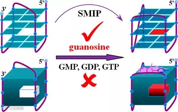 最近,浙江师范大学的邵勇研究员课题组发现,从人类端粒G4结构中移除一个鸟苷产生AP位点后,在K+中能形成反平行的G4结构,因而基于此建立了SMIP传感平台。他们分析物鸟苷与G4的AP位点结合后,发现G4结构发生了相应的变化,这种SMIP行为可用一个G4结构灵敏的探针来检测。研究表明,分析物电荷、氢键结构决定了结合的特异性,表现出高MIP识别选择性。该工作不仅实现了对溶液中鸟苷的特异性识别,也发展了分子印迹传感的新方法,为软分子印迹聚合物的研究提供了新的思路。
