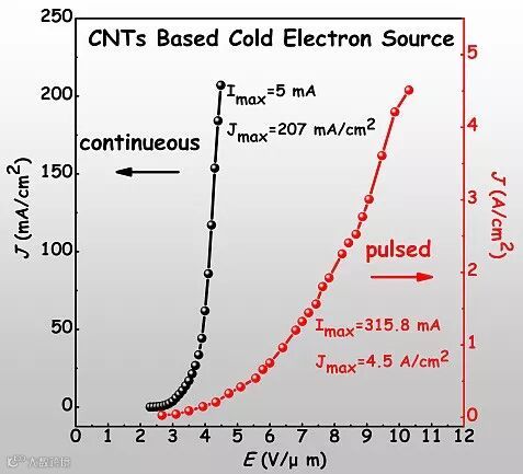 图1. 丝网印刷碳纳米管冷阴极场发射性能。