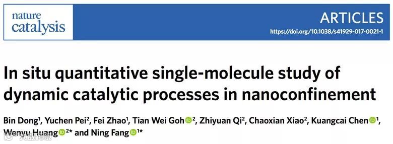 佐治亚州立大学方宁教授课题组和爱荷华州立大学黄文裕教授课题组合作利用单分子荧光成像研究纳米尺度下催化反应的限域效应。论文发表在近期的《自然•催化》(Nature Catalysis)杂志,第一作者为佐治亚州立大学博士后董斌和爱荷华州立大学研究生裴煜晨。