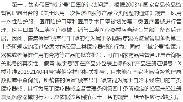 新冠肺炎疫情的蔓延,让口罩成为了“抢手货”,市场上曾一度出现供应短缺、政府相关部门进行限量供应的情况;与此同时,一些不良商家却动起了“歪脑筋”,把全民战“疫”视为商机,开始售卖“三无”口罩、假冒注册商标口罩、假冒“械字号”口罩等。