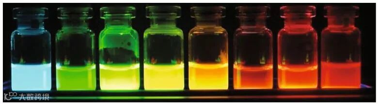 图3. 在同一波长激发光下不同尺寸的量子点显示不同的颜色。图片来源:Nat. Nanotech.