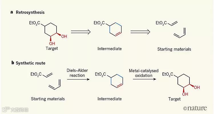 逆合成分析举例。图片来源:Nature