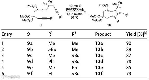 图3. [RhCl(CO)2]2催化化合物9的环化异构化。图片来源:Angew. Chem. Int. Ed.