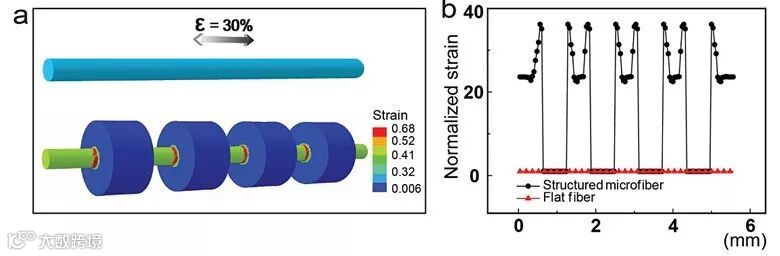 基于结构设计实现纤维表面应变分布调控。图片来源:Adv. Mater.