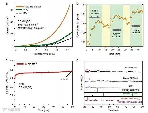 另外,研究人员还发现,N-WC nanoarray不仅具有优异的HER催化活性,OER催化活性也非常令人瞩目。虽然N-WC nanoarray作为酸性体系的OER催化剂还不够稳定,但是这项工作开辟了OER催化剂新的研究方向。该文章的共同通讯作者为孙晓明教授和刘文教授。