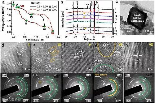 图4.Cu1.8S储钠反应的机理研究