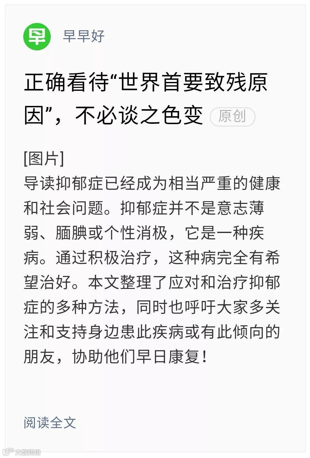 近日,Nature网站的一项调查再次显示,超过三成研究生受抑郁症困扰。除了研究生,青年科研工作者(“青稞”)也是抑郁症高发人群。我们团队的兄弟公众号,“早早好”,整理了抑郁症的起因和多种治疗方法,在此分享给诸位,同时也呼吁大家多关注和支持患此疾病或有此倾向的同学、同事或亲友。