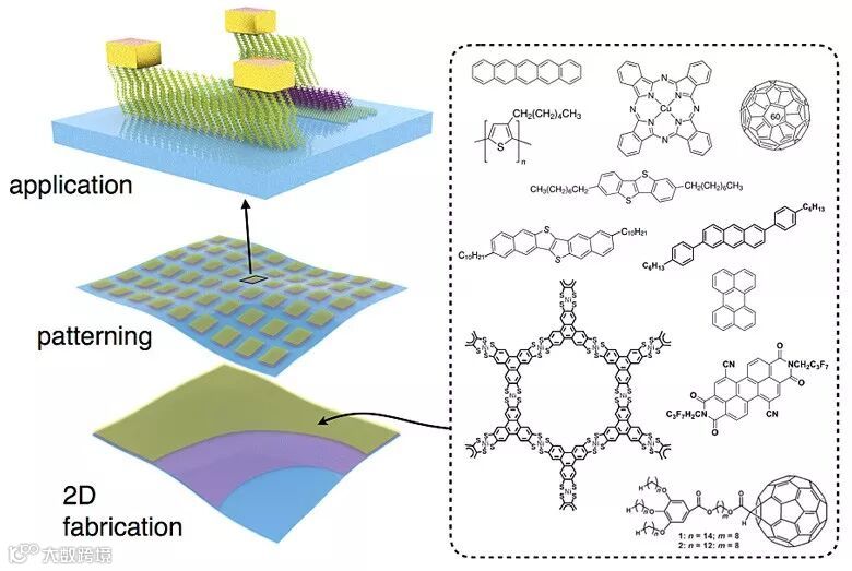 近日,天津大学胡文平研究团队在Advanced Materials 上发表了题为“2D organic materials for optoelectronic applications”的综述,分别对大面积二维有机材料的制备,有机晶态材料的图案化,及其在电子和光电子器件领域的应用进行了详细的阐述。