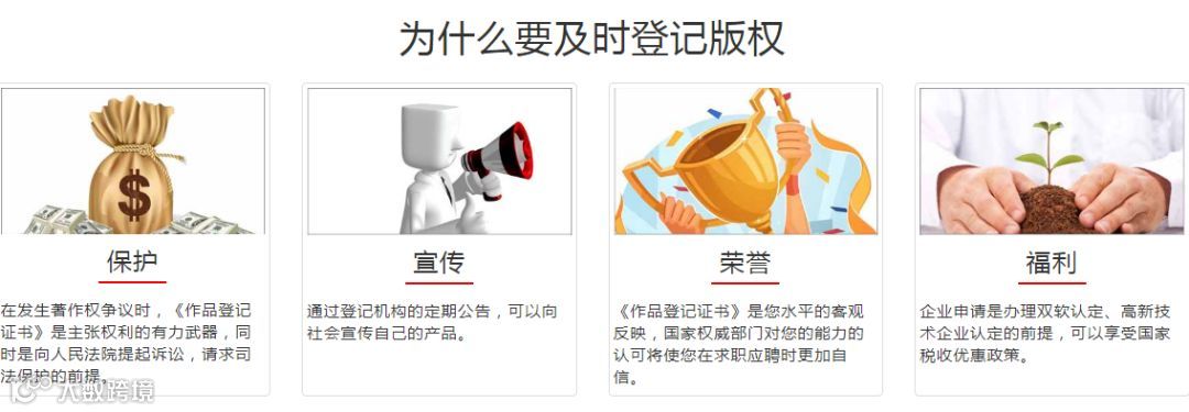3、版权登记对于个人自我价值的体现,企业创新实力的表现起促进作用;