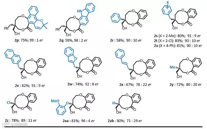同时,该催化反应还可进一步拓展到8-12元环内酯的合成中,且同样适用于烷基脂肪链、亚甲基以及三级胺修饰的底物中。