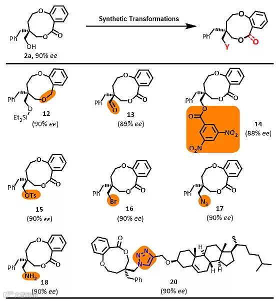 为了进一步证明该反应的实用价值,作者将合成的内酯做进一步简单的转化,得到多种多官能化的手性中环化合物。