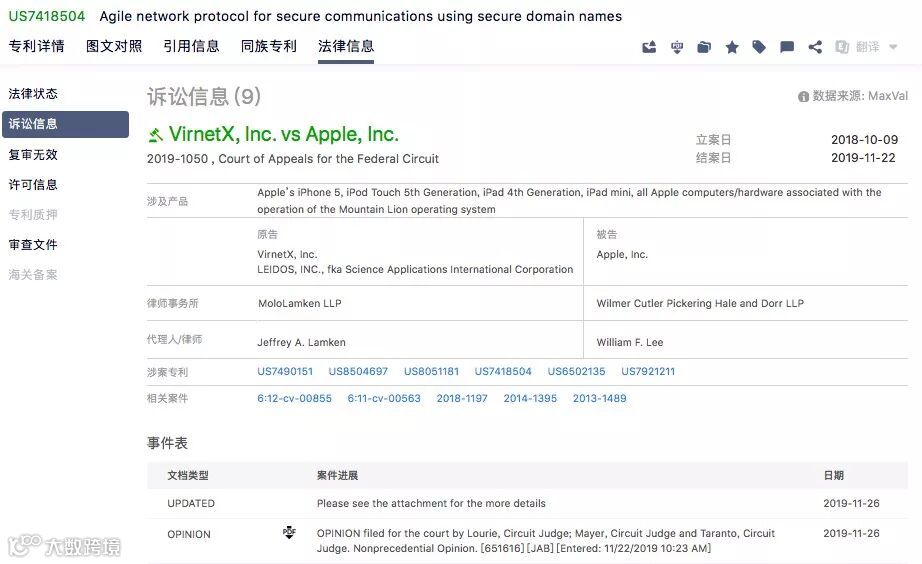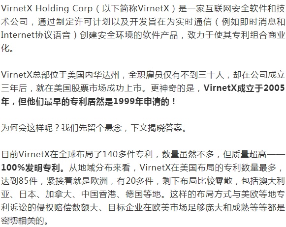 还记得文章开始说的么?VirnetX成立于2005年,但他们最早的专利申请出现在1999年。