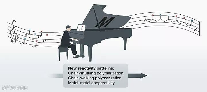 陈昶乐教授还受邀在Nature Reviews Chemistry 杂志上撰写Perspective文章,[2] 介绍了一些新型的催化剂设计手段以及新型调控手段在烯烃聚合中的应用:链穿梭聚合、相转移催化剂活化、金属-金属协同效应、链行走聚合、配体次级配位效应、配体-底物效应、金属-底物效应、氧化-还原调控等等。该论文被选为当期的封面文章。在这两篇论文中,陈昶乐教授均为唯一作者。