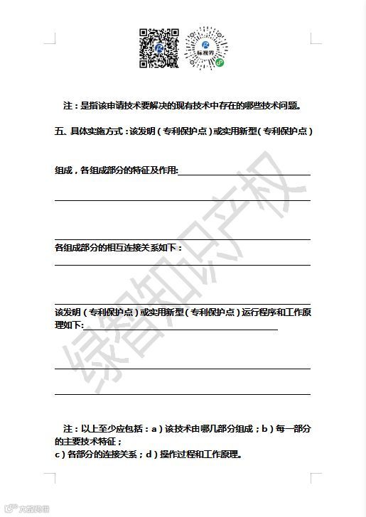 注:以上文件要求一式两份。要求减缓各种专利费用的可同时提交费用减缓请求书二份。以上文件必须是打印文字(采用4、小4或5号字的宋体、仿宋体打字或印刷,字迹为黑色,一定要清晰;纸张为A4的打印纸或复印纸;文章版心位置:距纸张的上边和左边留有2.5厘米的边距,距右边和下边留有1.5厘米的边距),并且一律采用专利局规定的表格格式。