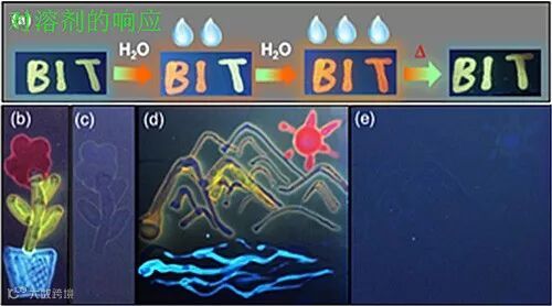 近日,北京理工大学化学与化工学院王苏宁教授团队,在此领域取得了崭新的成果(图2)。她的团队在基于前期研究工作基础之上(Angew. Chem. Int. Ed., 2014, 53, 9086; Angew. Chem. Int. Ed., 2017, 129, 9288),通过简单的合成手段把路易斯酸(硼)、碱(氧)引入到有机共轭分子骨架上,获得到了一系列简单的新型有机含硼分子。通过研究发现,该系列有机小分子对溶剂、温度、压力响应迅速,颜色变化明显,可逆性好等优点。更有意思的是,此类材料可以在不同基质上进行色彩丰富的绘画和文字书写(365 nm下),值得一提的是这些用此分子处理过的基质可以多次重复使用(如图3-6所示),表现出广阔的应用前景,对进一步开发简单分子多重刺激响应性材料具有重要的研究和参考价值。
