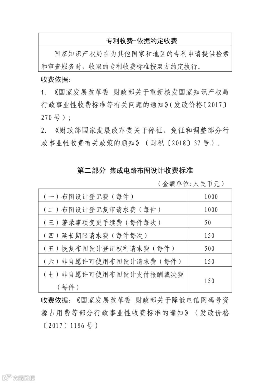 附件:专利收费、集成电路布图设计收费标准