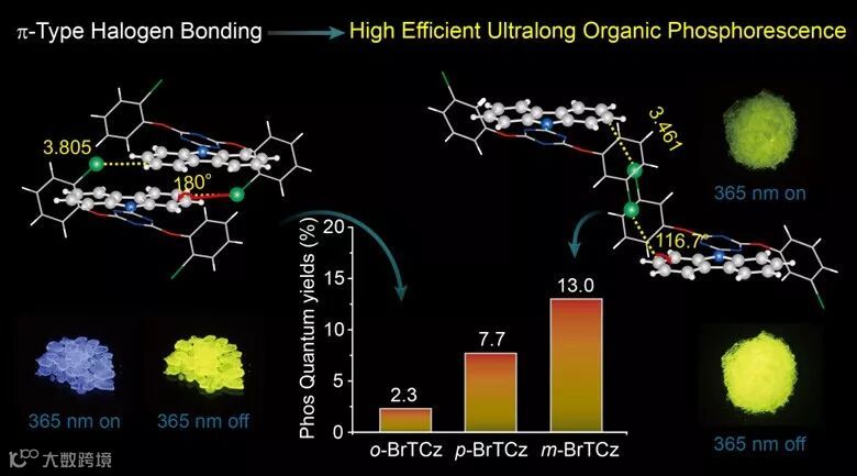 超长磷光,即长余辉发光,是一种非常有趣的发光现象,当停止光激发仍能持续发光达几秒到几小时。与无机长余辉材料和有机金属配合物材料相比,纯有机长余辉材料具有超长的发射寿命、大的斯托克位移、丰富的激发态性质以及低成本、易修饰等特性,近几年来得到了科研工作者的广泛关注。然而,在常温常压空气中,由于弱的自旋轨道耦合,或者由氧气、湿气、分子振动导致三线态激子的强非辐射失活,超长有机磷光材料效率很低。这使得超长有机材料在实际应用方面受到了阻碍。
